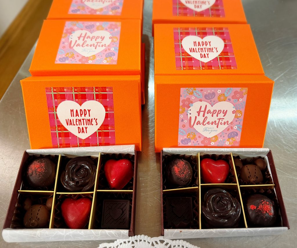 数年前に販売したバレンタインチョコ(先日、共同購入依頼のブログで参考画像で掲載したもの)の中身より、だいぶ張り切って作ってしまい、グレードアップしちゃいましたー(笑)。